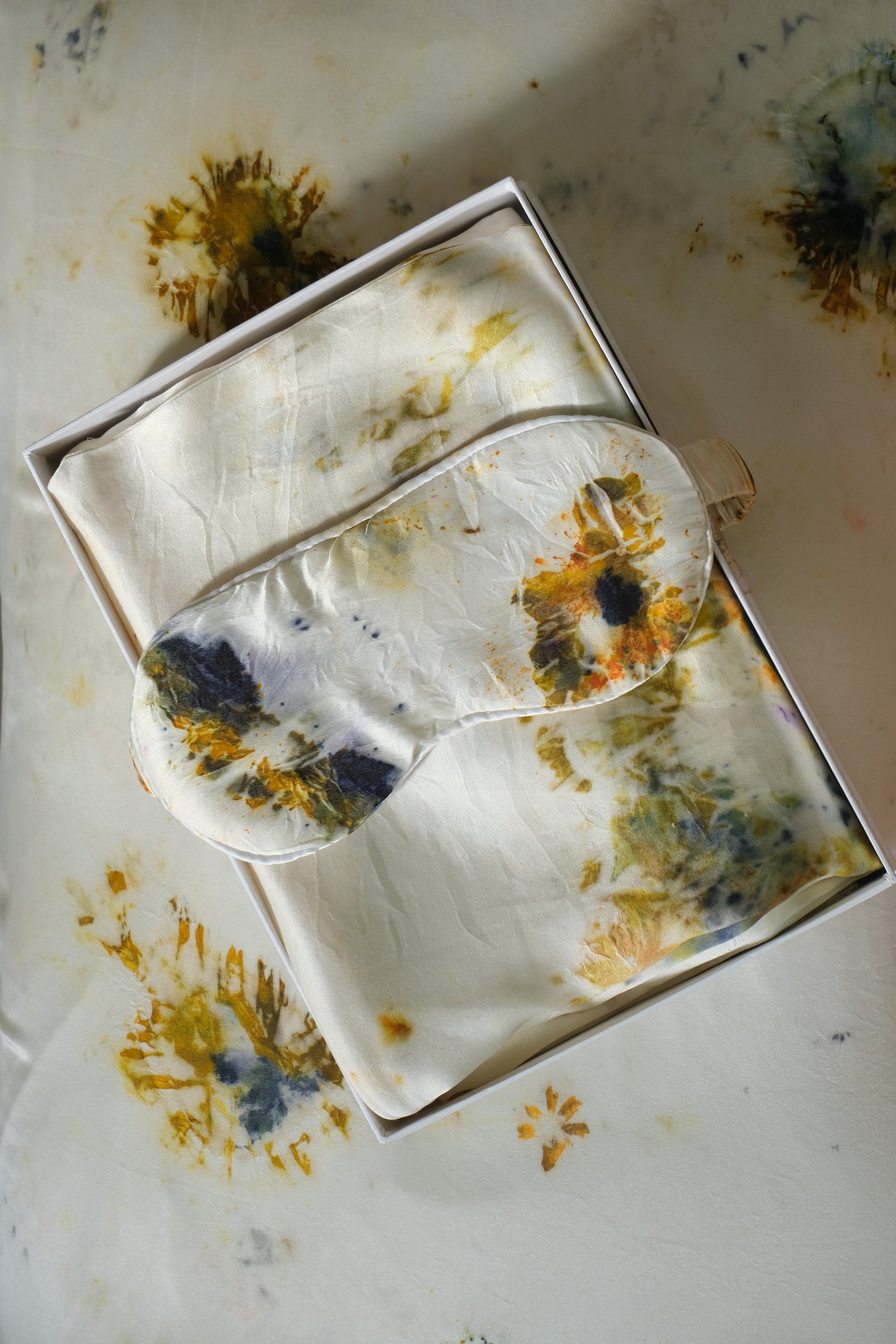 Nuestro set de funda y antifaz de seda está inspirado en bosques imaginarios, el buen dormir y en ese sueño reparador que sienta tan bien!